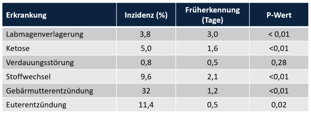 Einfluss von Gesundheitsstörungen rund um die Geburt auf Futteraufnahme, Wiederkauaktivität und generelle Aktivität (Friedmann et al., 2022):